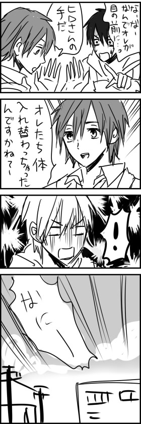 野分(ヒロさん)とかヒロさn(野分)とかどっちがどっちだかわからなくて吹きました。入れ替わるのって面白いですよね、どのジャンルでも一回はやっちゃいます(´・ω・`*)