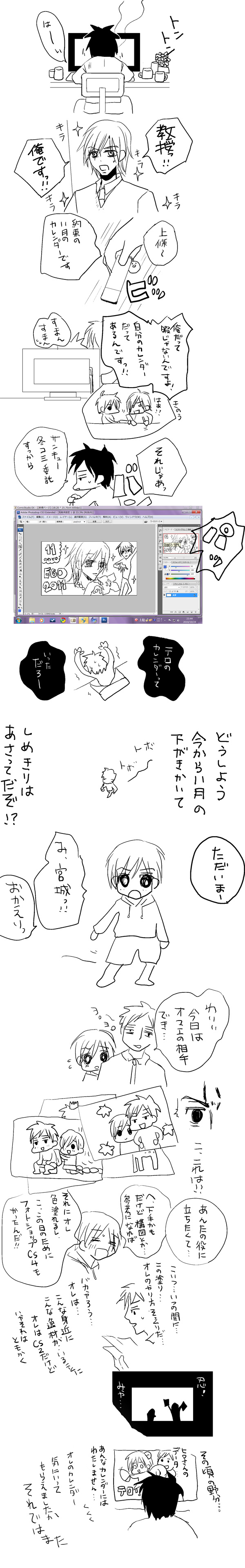 下の記事で険悪ムードにしたまま仲直りさせないで放置してすみません!朝・昼・夜の3部構成になってて、昼に宮城が謝りのメールして、夜にお詫びにご飯ごちそうして、深夜にチョメチョメの予定だったけど、時間がなくて朝しか書けませんでした!!><