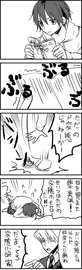 愛ロマでは、美咲は素直で、ウサギさんも普通にイケメン好青年なのかと勝手に思ってたから、ただのド変態で吹いた。本家にはある美咲のツッコミがない分、さらに変態っぽかった。鈴木美咲気づけーー!そいつは変態だぞ!!って何度も思ったよ~~~あ~面白かった!!