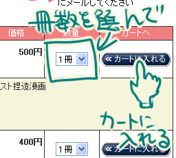 欲しい本の冊数を選んで、「カートに入れる」を押して↓