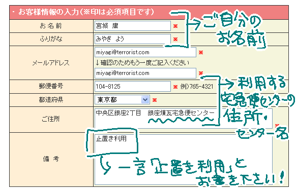 ※家に送られるのが辛い方は営業所止置きを利用してください。詳しくは→クロネコ その場合、お名前だけ自分のもので、住所・郵便番号は止置き営業所のものを書いて、備考欄に「止置き利用」とお書きください。記事真ん中で詳しく書いてますので一読お願いします!